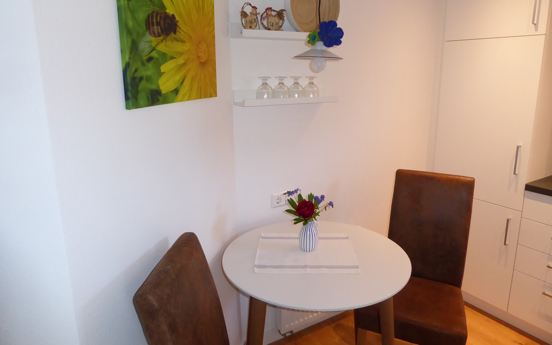 Die Räume haben insgesamt 30 qm und bieten zwei Personen Platz. Eine sehr gut ausgestattete Wohnküche verfügt über ein Cerankochfeld, Backofen, Kühl-/Gefrierkombination und Kaffeemaschine. Der runde Tisch mit zwei Stühlen vervollständigt den Raum. Für Ihre Gesundheit fließt gefiltertes und energetisiertes Trinkwasser (UMH-Technik) aus dem Wasserhahn. Das Bad mit Dusche und WC schließt an die Küche an. Für ein entspannendes Basenfußbad steht eine Fußwanne und eine Portion Basensalz pro Person bereit. Die Diele mit Garderobe führt in den Wohn-/Schlafraum. Dieser ist mit zwei bequemen Liegesesseln, Leselampe, zwei Ablageregalen, einem offenen Kleiderschrank, einer zusätzlichen Kleiderstange und zwei zusammengestellten Einzelbetten mit Nachttischen eingerichtet. Die Bettwaren sind aus Naturmaterial (Baumwolle/Wolle). Jeder Raum verfügt über ein Fenster und einen Heizkörper, der durch unsere Pelletheizung mit nachhaltigen Ressourcen gespeist wird. Vor dem Haus steht Ihnen ein kostenloser Parkplatz und eine kleine Sonnenterrasse zur Nutzung. Im Wohnraum haben Sie einen LAN-Anschluss. Damit Sie nachts gut regenerieren können, schaltet WLAN ab 22 Uhr über Nacht ab. Erholen Sie sich bei uns ohne Fernseher und entspannen Sie mit Büchern und Musik aus unserem Angebot.